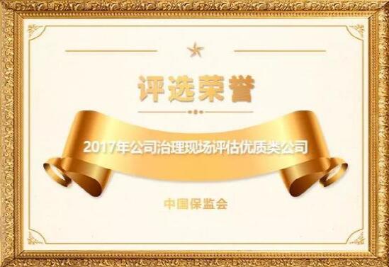 在2017年公司治理现场评估中,被中国保监会授予优质类公司称号。