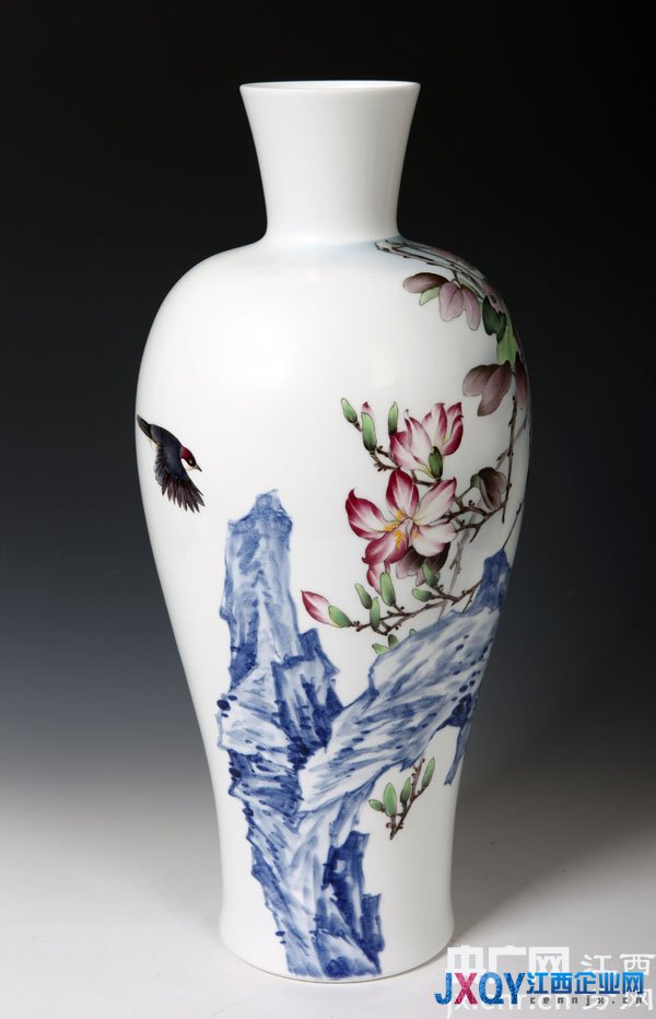 几年前,他最有代表性的艺术创作还要属写意青花,洪南雨用自己独特的陶瓷艺术语言,形象的表现自己的思想意识和审美感受。从2004年开始,他专攻写意青花,他笔下的写意青花花鸟不只是简单的形式摹写,而是涵映世界广大精微于胸的精神抒发。没有浮躁,没有刻意,他凭借宁静的心襟,去发现天地间深沉的意境。